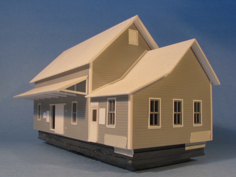 As promised, here is the caboose body as of today. I’ve installed the cupola windows, and I guess I will paint the interior of the cupola before roofing it over. I still need to figure out how to take photos with the new camera. I suspect I may be able to cheat and use the daylight flourescents instead of the tungsten photofloods. This would be cool because I might then be able to get rid of the photo studio.